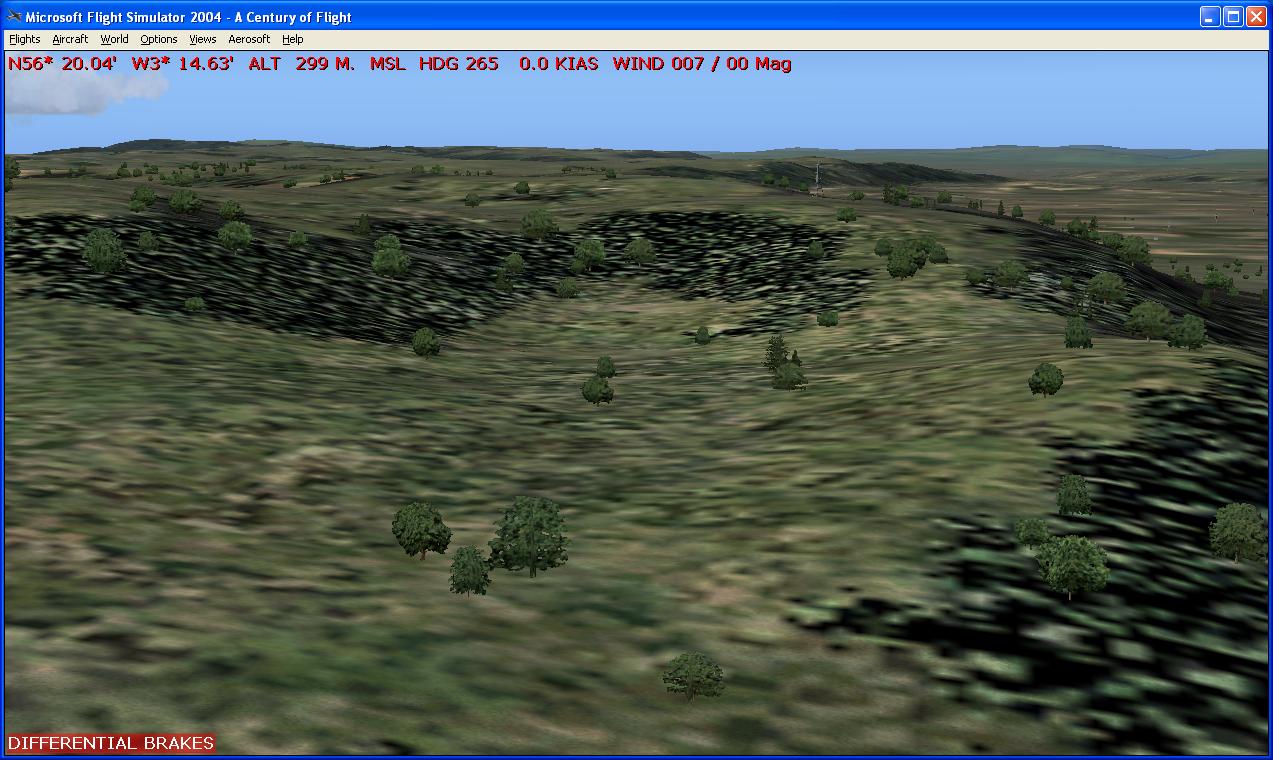 Both shots were taken using FSGenesis EUR76 mesh. The source data is entirely from 3" SRTM data, which is complete in this area. The relief is not 100% accurate, and more accurate source data may improve it slightly, but it is adequate. I have no more accurate data for this area and I have no plans at present to develop such data. Maybe NASA will eventually release its 1" SRTM data.